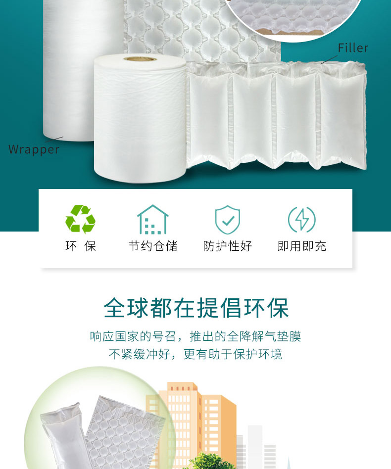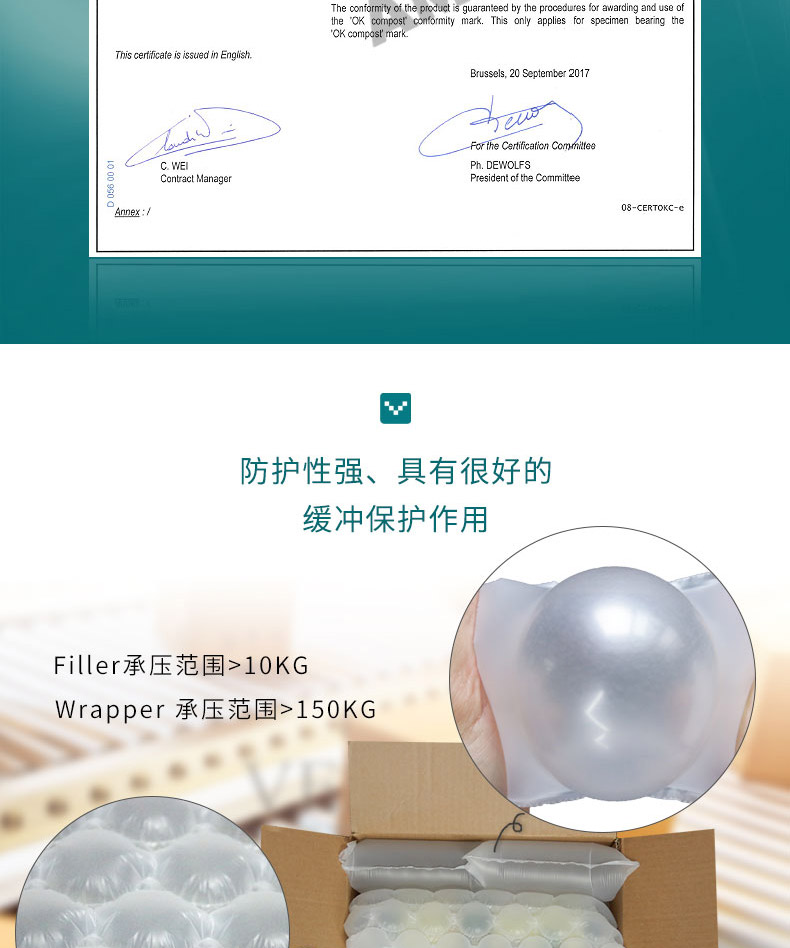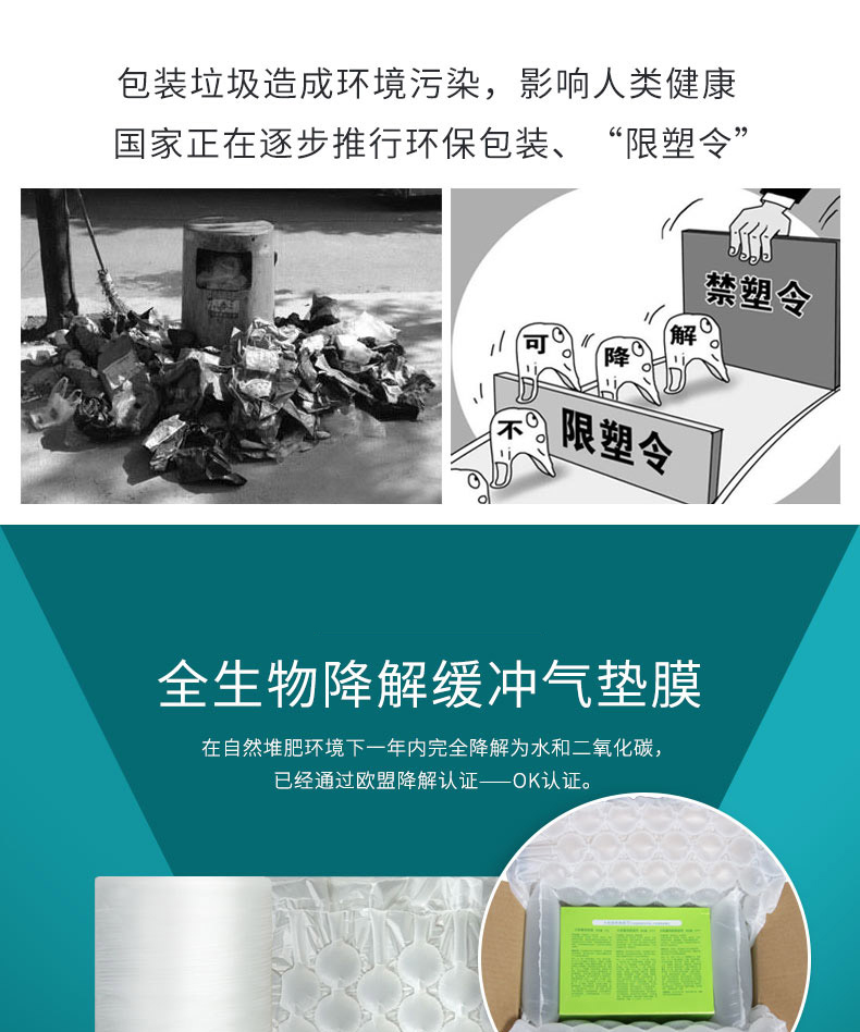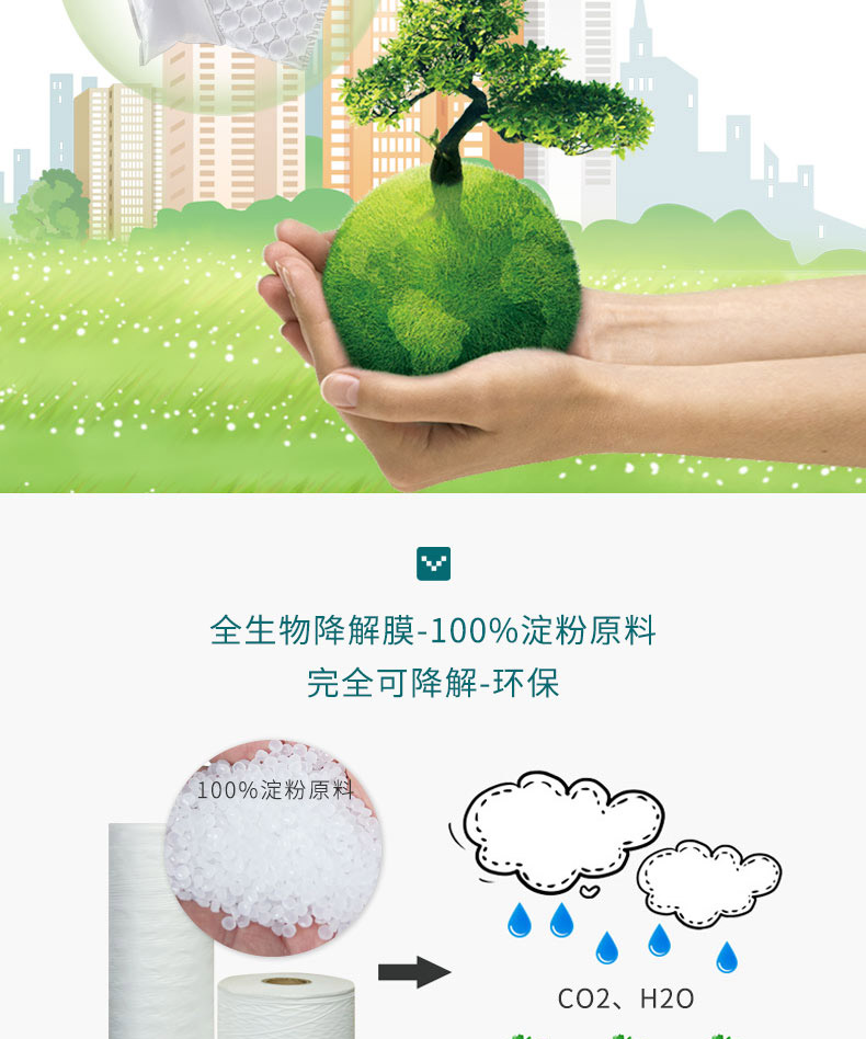 生物降解缓冲包装材料既具有传统包材的缓冲、减震、抗压功能,同时具有通过土壤和水中的微生物作用或通过阳光中的紫外线的作用,在自然环境中分裂降解为二氧化碳和水。