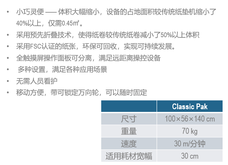 Classic 经典型纸垫是一款应用非常广泛的产品,几乎可以满足所有盒内的包装需求,从缓冲、包裹、定位到填充。