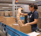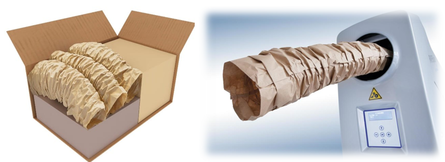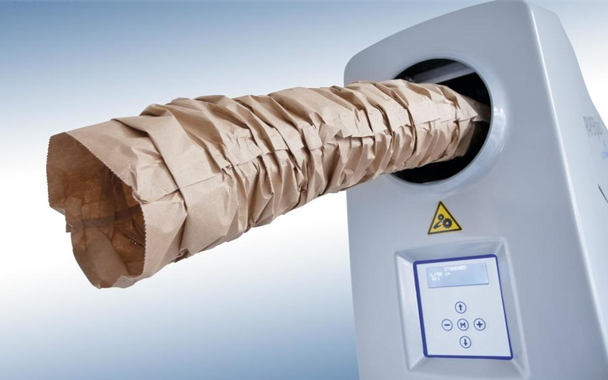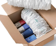 Chevron 纸垫便可完成包装箱内的空隙填充,这来源于皱褶纸筒所产生的巨大空间,皱褶纸筒甚至能为中等重量的产品提供空间填充、支撑定位的防护功能。间距7公分的打孔撕裂线方便纸筒分离而无需刀割。
