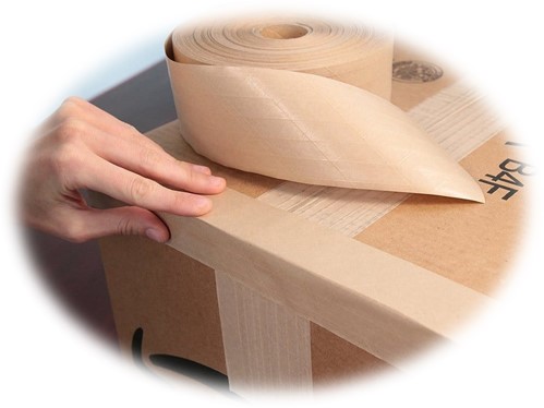 湿水纸胶带是一种新型环保胶带,由牛皮纸和特殊的环保胶水构成,遇水产生粘性,无任何塑料或者不环保的成分,是取代传统BOPP胶带的理想环保产品。